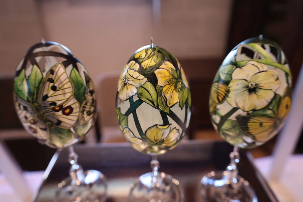 Gelernt hat sie die Batiktechnik von ihrer Mutter. Vor Ostern saß die ganze Familie am Tisch und hat Eier mit Batikmustern überzogen. Das heißt, über dem großen Tisch hing dann auch der Geruch von Ruß. Und heute? „Wenn‘s nicht stinkt und rußt, ist es nicht Ostern“, erzählt sie lachend.