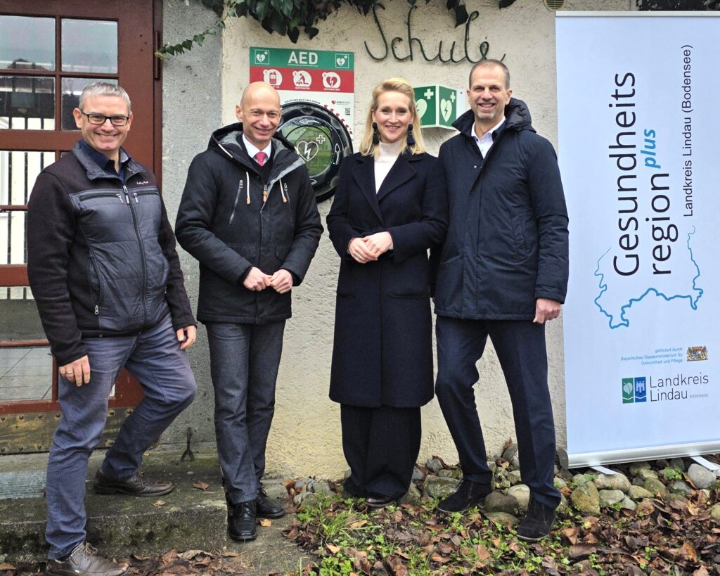 Vor diesem Hintergrund wird die Ausstattung des Landkreises Lindau mit öffentlich zugänglichen Defibrillatoren weiter ausgebaut. Kürzlich wurde ein neuer AED an der „Alten Schule“ in Unterreitnau angebracht. Der Standort ist rund um die Uhr von außen zugänglich und damit jederzeit erreichbar. Neben Unterreitnau wird auch die Gemeinde Hergatz zeitnah mit einem neuen Defibrillator ausgestattet.