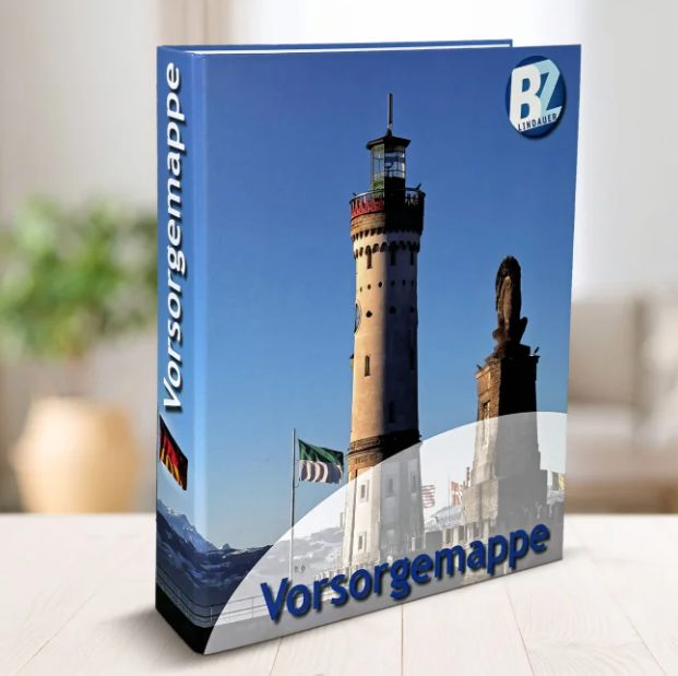 Im Laufe eines Lebens sammeln sich Unmengen an wichtigen Verträgen, Dokumenten und Informationen an. Das Wissen darüber übersichtlich zusammenzufassen, dabei kann unsere BZ-Vorsorgemappe helfen. Die Mappe leitet Sie an, alles aufzuschreiben und zusammenzutragen, was den Menschen hilft, die sich im Krankheits- oder Todesfall in einer stressigen und oft emotional äußerst aufwühlenden Zeit um Sie oder Ihren letzten Willen kümmern möchten und sollen. In der Vorsorgemappe finden sie dann alle wichtigen Fakten, Informationen und Dokumente. Dank des praktischen Ringordners lassen sich bereits vorhandene Dokumente dazu heften.